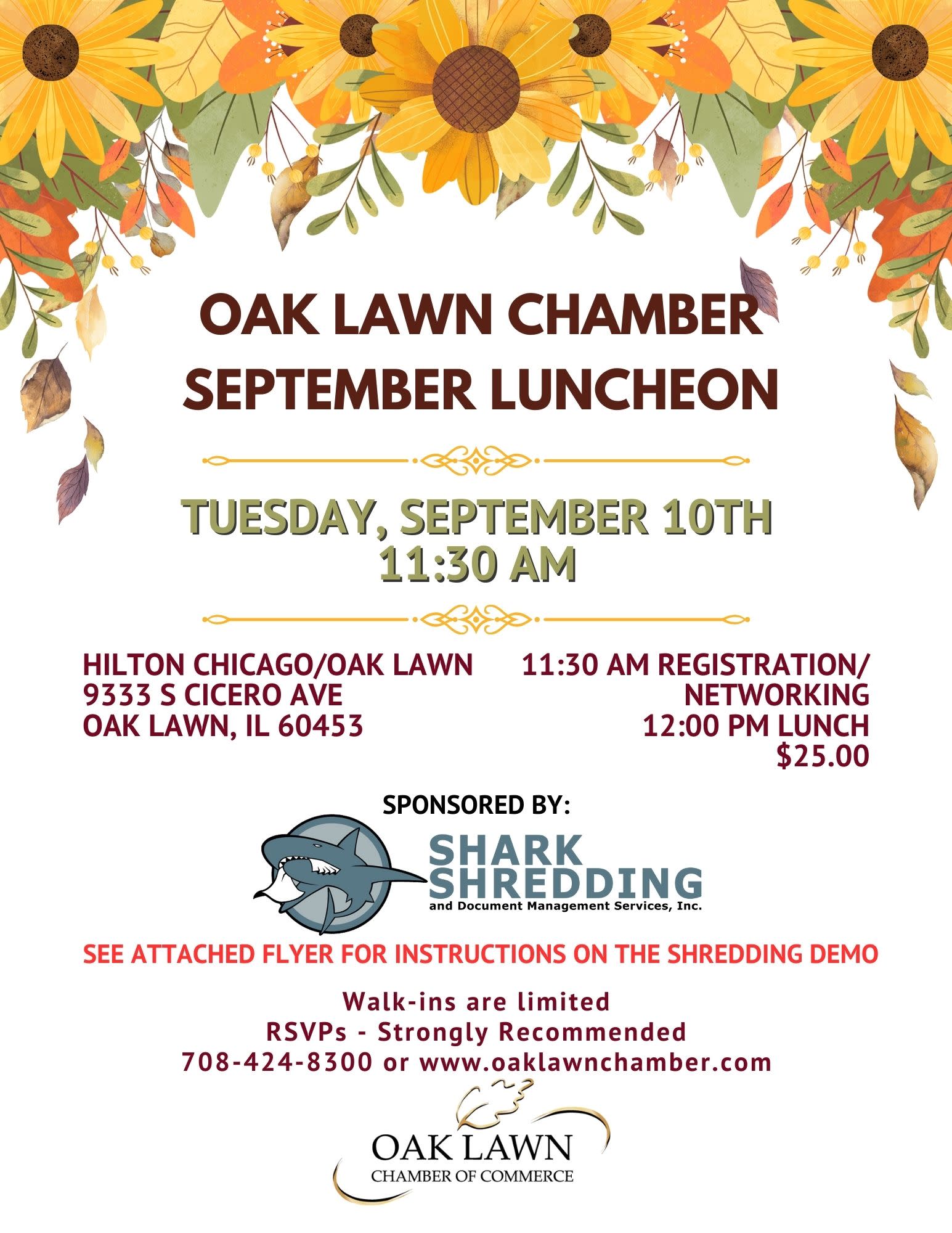 Check-In begins at 11:30 am with lunch at 12 pm.